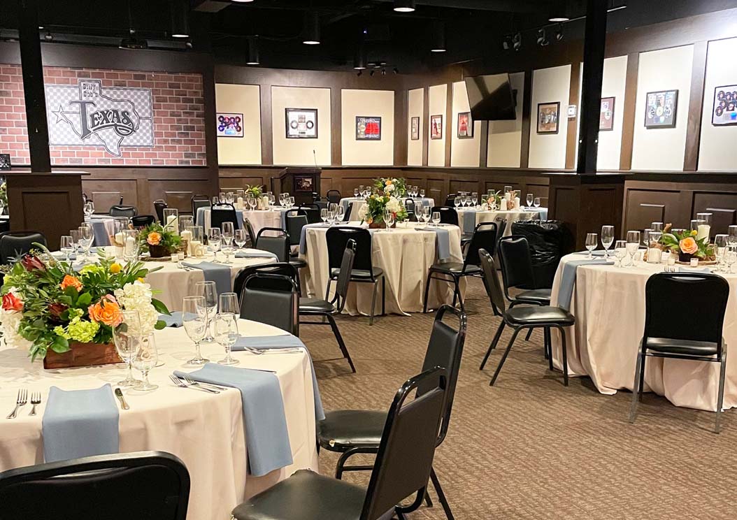 For the Honky Tonk over in everyone, the Guitar Bar showcases authentic music memorabilia. Housing more than 30 autographed guitars from many of the artists who have performed on the famous Billy Bob’s stage. The Guitar Bar holds up to 100 guests and is bathed in the light of vintage neon signs. In the heart of the fun, this is also a fantastic place to host any event that craves a truly authentic Texas experience!